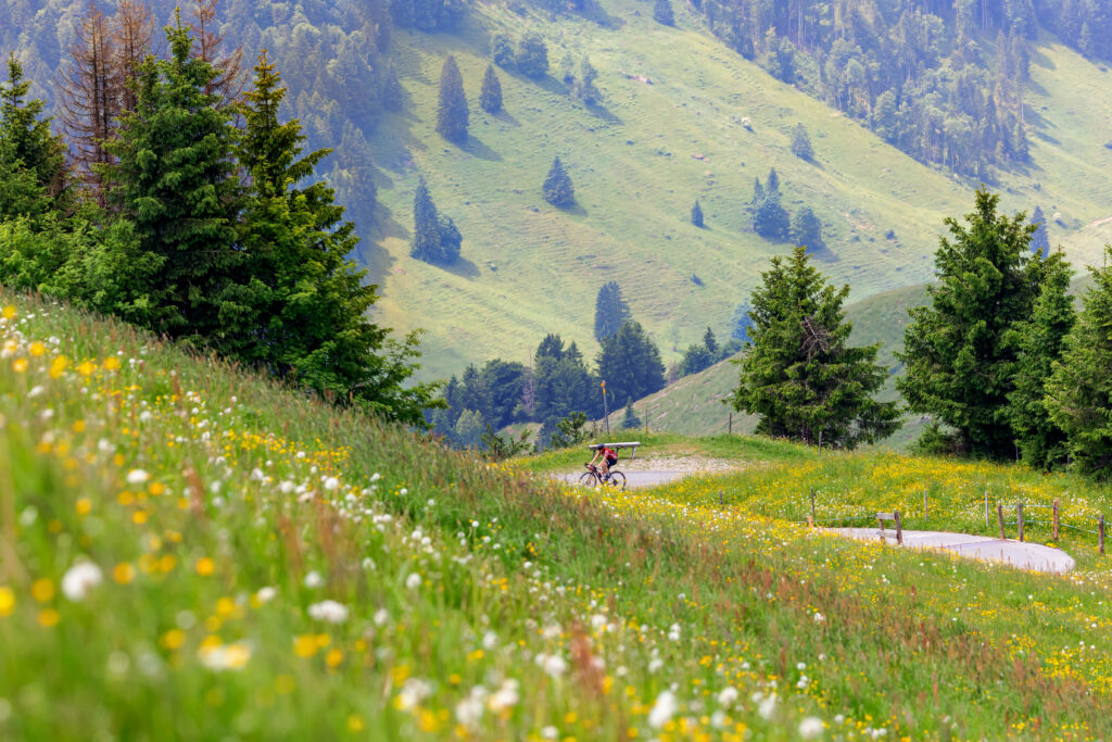 We seem to have two main directions. Up Rheinvalley or towards Dägelsberg. Simon Geiser is flying on the Rheindamm followed by Michael Walser, Andreas Krucker and Simone Eder. Towards Tösstal there are several routes. Loic, Chris, Jana take the road, the other are offroad or hiking. The race is on, …